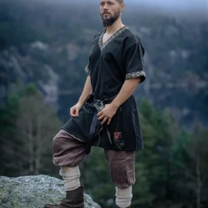 Túnica viking- na cor preto: Tamanho M