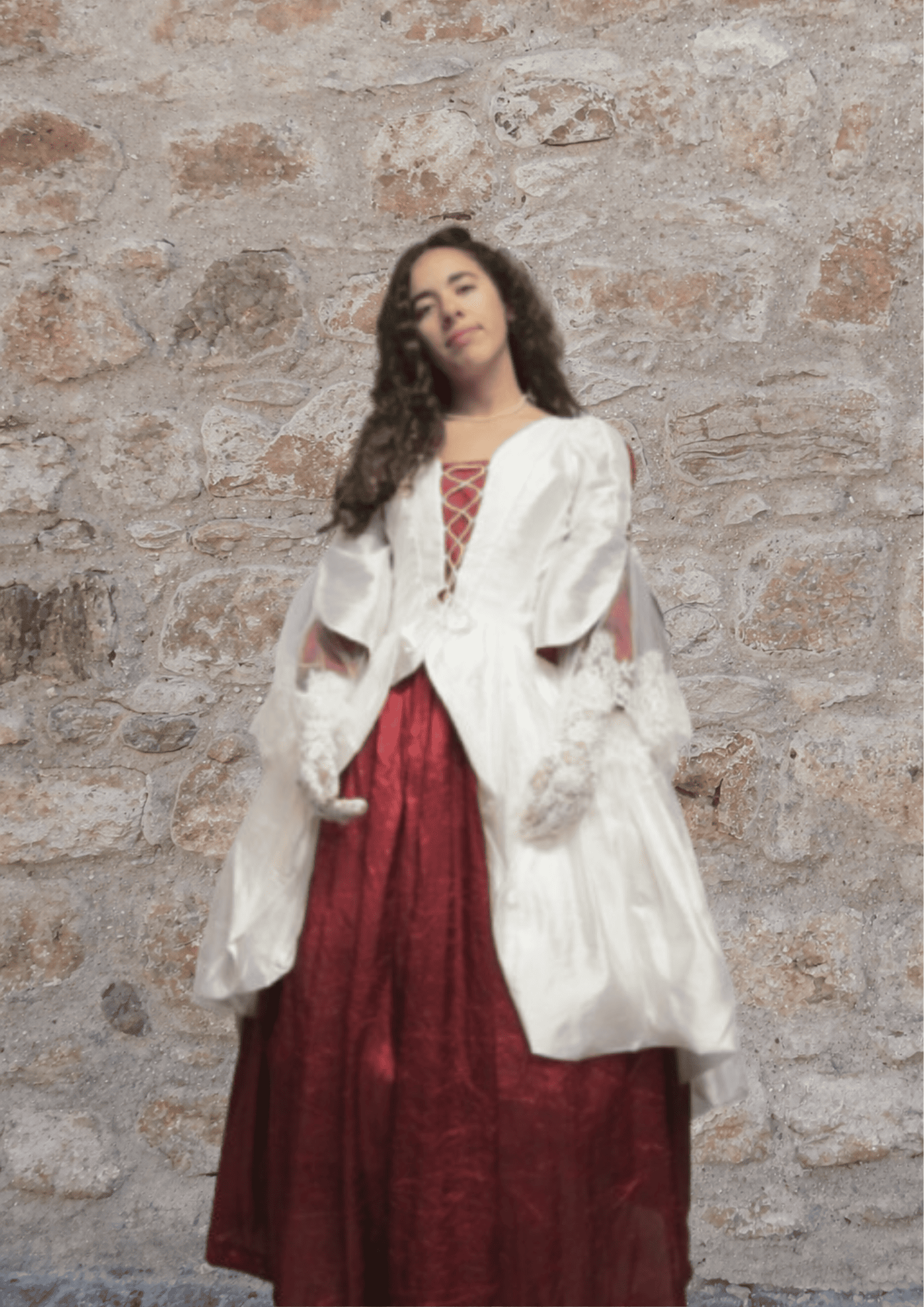 VESTIDO COR PEROLA E BROUDAUX EM SEDA COM RENDAS PEROLAS COM SAIOTE COM AROS INCLUIDOS