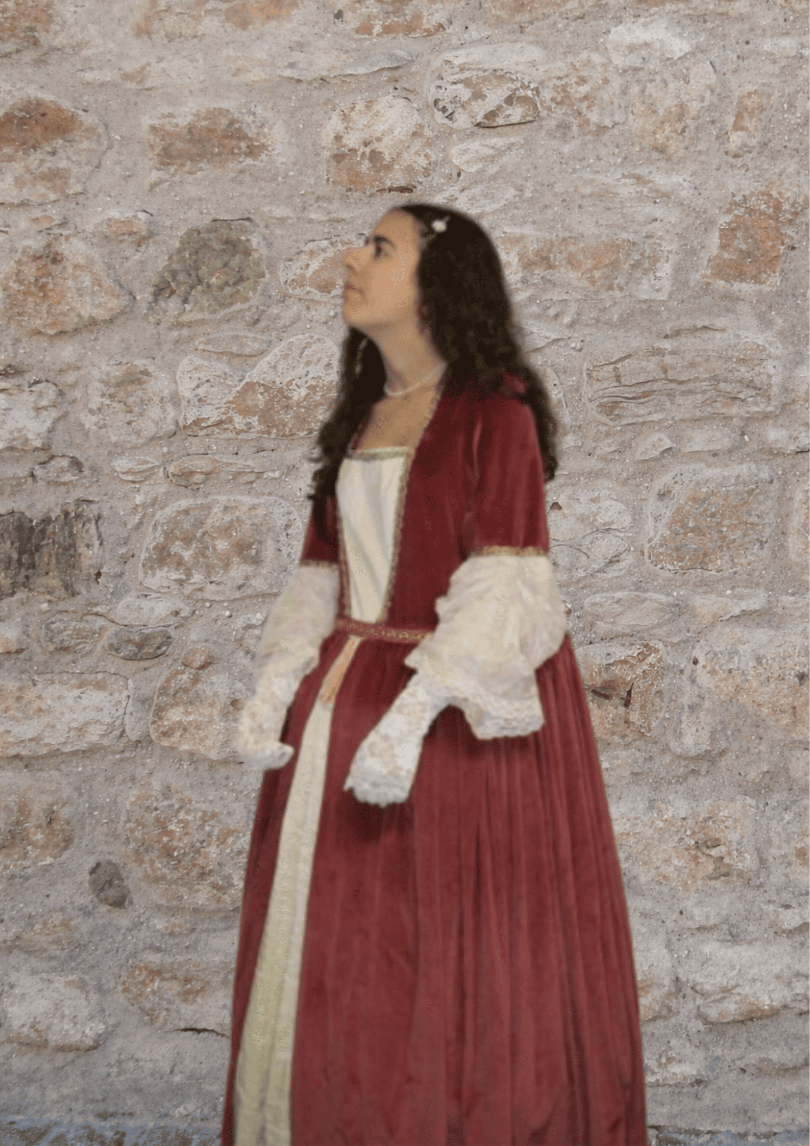 VESTIDO COR ROSA VELHO EM VELUDO COM RENDAS PEROLA E ROSA COM SAIOTE COM AROS INCLUIDOS