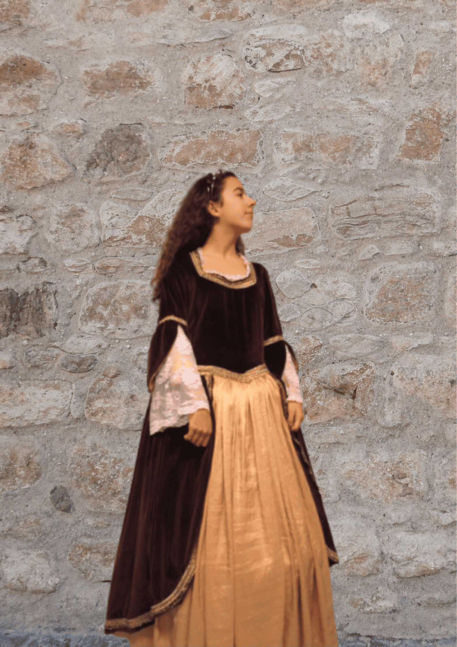 VESTIDO EM VELUDO COR VINHO COM RENDAS PEROLA COM SAIOTE COM AROS INCLUIDOS